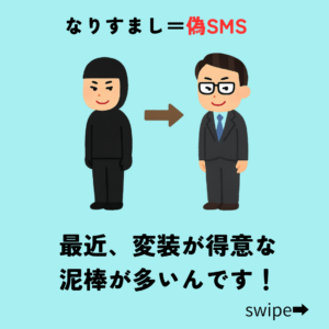 ここでは「偽SMS」を「変装名人の大泥棒」にたとえて説明しています。